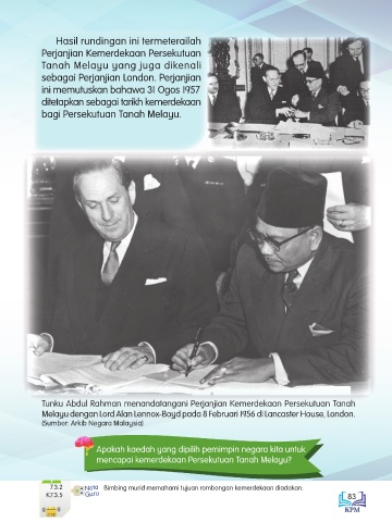 Tunku Abdul Rahman menandatangani Perjanjian Kemerdekaan Persekutuan Tanah