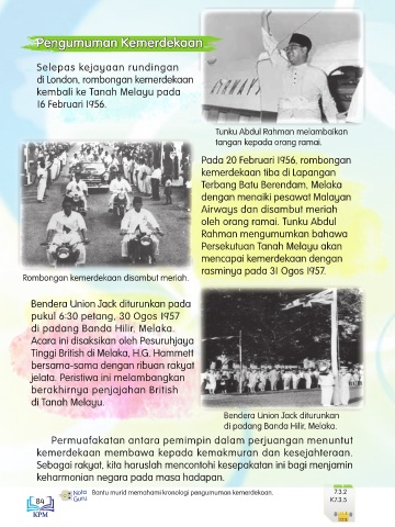 Nota Bantu murid memahami kronologi pengumuman kemerdekaan. 7.3.2