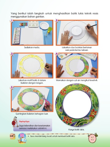 68 Guru • Guru membimbing murid untuk membuat batik lukis.