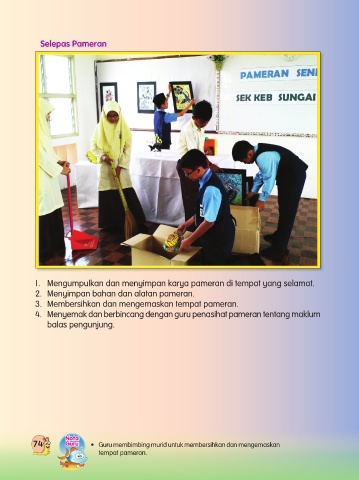 74 Guru • Guru membimbing murid untuk membersihkan dan mengemaskan
