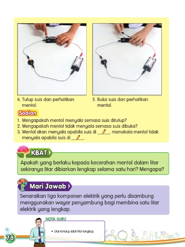 1. Mengapakah mentol menyala semasa suis ditutup?