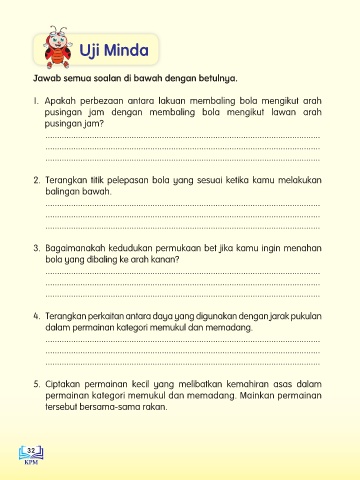 4. Terangkan perkaitan antara daya yang digunakan dengan jarak pukulan