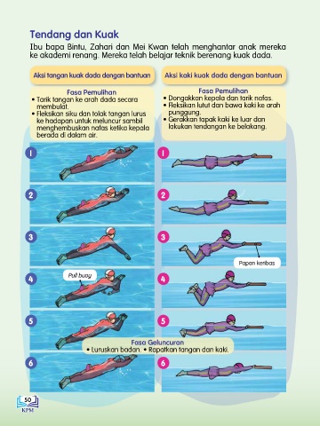 ke akademi renang. Mereka telah belajar teknik berenang kuak dada.