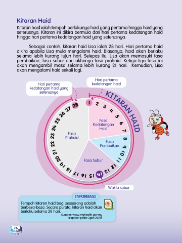 Sebagai contoh, kitaran haid Lisa ialah 28 hari. Hari pertama haid
