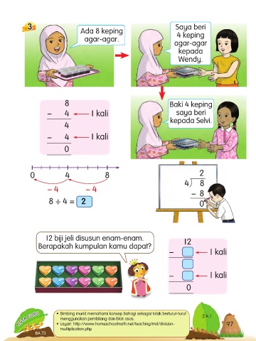 NOTA GURU • Bimbing murid memahami konsep bahagi sebagai tolak berturut-turut 2.4.1