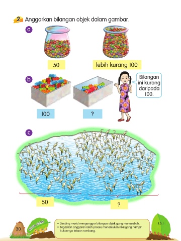 NOTA GURU • Bimbing murid menganggar bilangan objek yang munasabah. 1.5.1