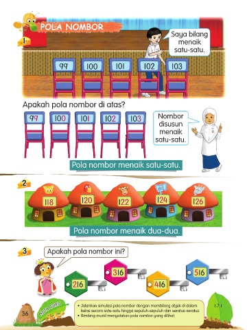 36 • Bimbing murid menyatakan pola nombor yang dilihat.