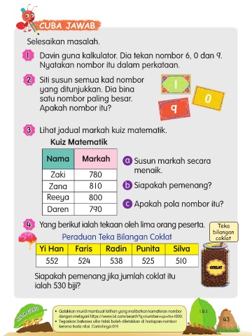 NOTA GURU • Galakkan murid membuat latihan yang melibatkan kemahiran nombor 1.8.1 43