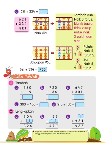 NOTA GURU • Tunjukkan kepada murid bahawa operasi tambah boleh diselesaikan 2.1.1