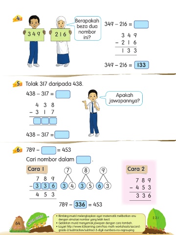 64 • Galakkan murid menyemak jawapan dengan cara tambah.