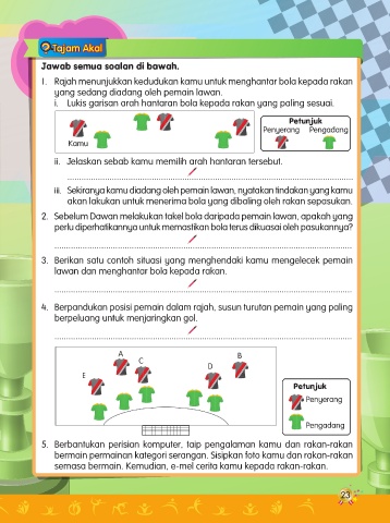 1. Rajah menunjukkan kedudukan kamu untuk menghantar bola kepada rakan