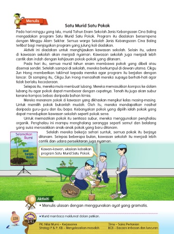 mengadakan program Satu Murid Satu Pokok. Program itu diadakan bersempena