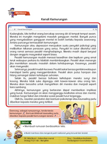 yang buruk. Kemurungan ini akan mengganggu kesihatan emosi dan mental,