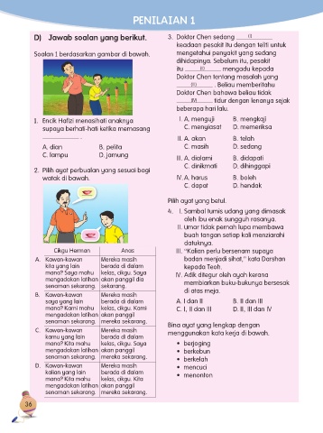 D) Jawab soalan yang berikut. 3. Doktor Chen sedang (I)