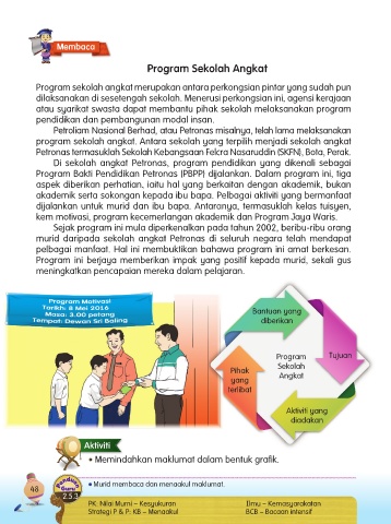 Di sekolah angkat Petronas, program pendidikan yang dikenali sebagai