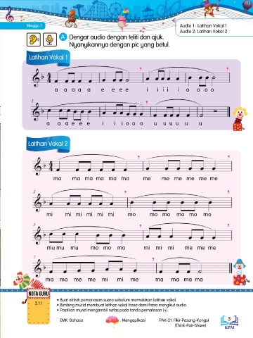 2.1.1 • Bimbing murid membuat latihan vokal frasa demi frasa mengikut audio.