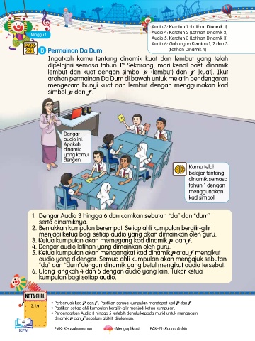1. Dengar Audio 3 hingga 6 dan camkan sebutan “da” dan “dum”