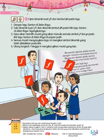 4. Semua murid menyanyikan lagu ini mengikut simbol dinamik yang