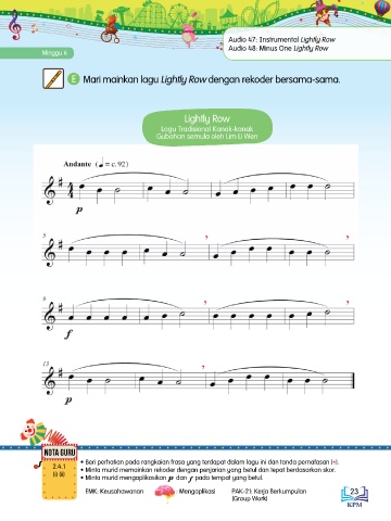 E Mari mainkan lagu Lightly Row dengan rekoder bersama-sama.