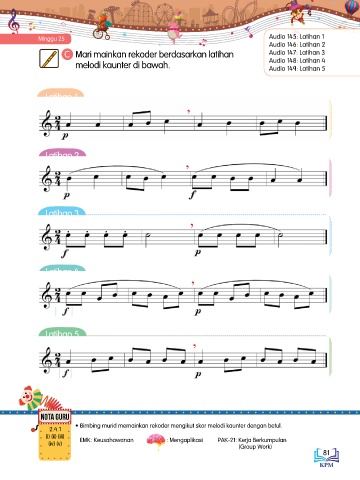 C Mari mainkan rekoder berdasarkan latihan Audio 147: Latihan 3