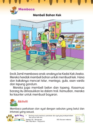 Nota Guru • Bimbing murid membaca perkataan dan ayat yang terdapat dalam