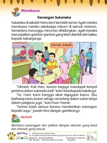 AT: Kongsikan pengalaman sukaneka yang pernah kamu alami di sekolah. 2.1.1
