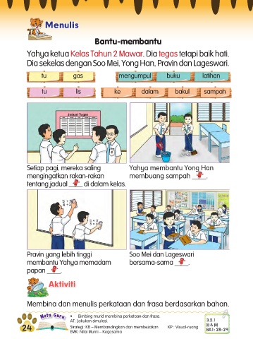 Nota Guru • Bimbing murid membina perkataan dan frasa.