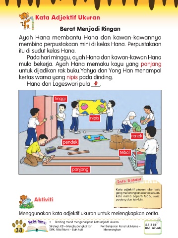 Nota Guru • Bimbing murid mengenal pasti kata adjektif ukuran.