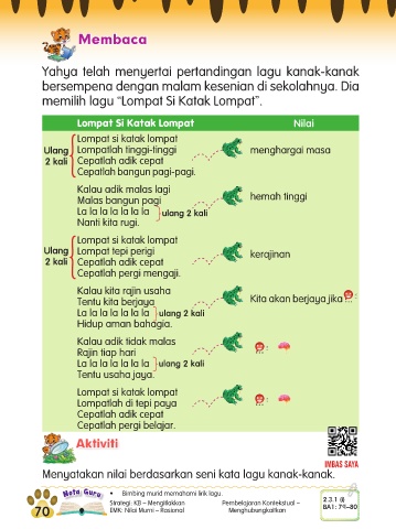 Nota Guru • Bimbing murid memahami lirik lagu.