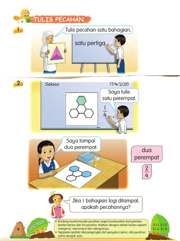 NOTA GURU • Bimbing murid menulis pecahan wajar berdasarkan kad gambar, 3.1.1, 3.1.2