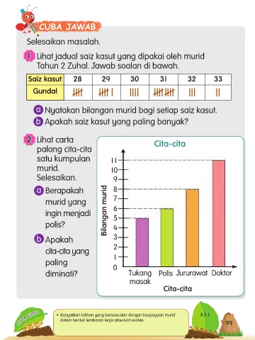 . Nyatakan bilangan murid bagi setiap saiz kasut.