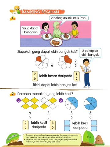 NOTA GURU • Bimbing murid membanding pecahan wajar dengan melukis gambar 3.1.5