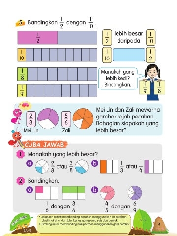 NOTA GURU • Jalankan aktiviti membanding pecahan menggunakan kit pecahan, 3.1.5 9 9