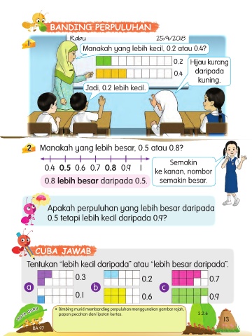 NOTA GURU • Bimbing murid membanding perpuluhan menggunakan gambar rajah, 3.2.6 13 13