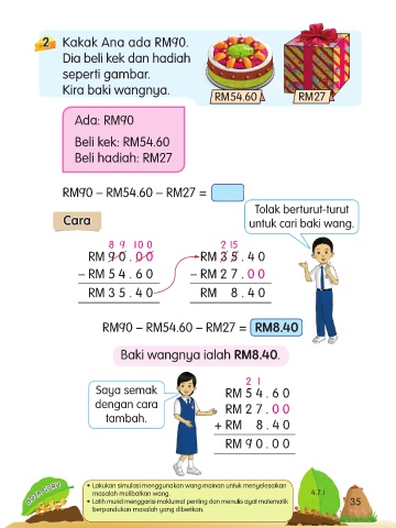 NOTA GURU • Lakukan simulasi menggunakan wang mainan untuk menyelesaikan 4.7.1