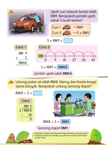 4 Untung jualan air ialah RM18. Nancy dan Kavita kongsi