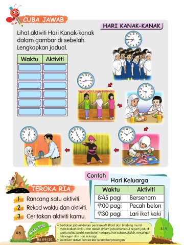 1 Rancang satu aktiviti. 8:45 pagi Bersenam