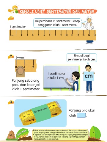 54 • Tegaskan unit cm digunakan untuk mengukur objek yang pendek dengan