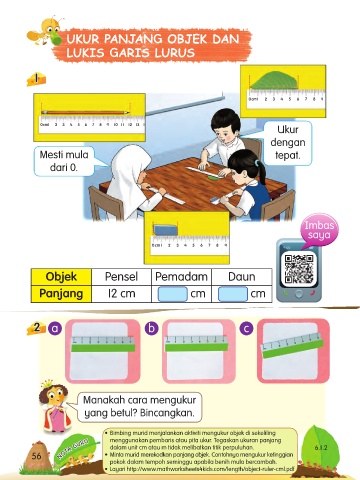 56 • Minta murid merekodkan panjang objek. Contohnya mengukur ketinggian