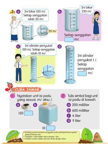 • Pastikan simbol mililiter dan liter ditulis dengan betul. 67