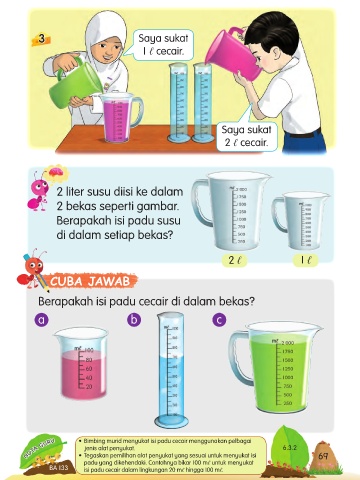 NOTA GURU • Bimbing murid menyukat isi padu cecair menggunakan pelbagai 6.3.2