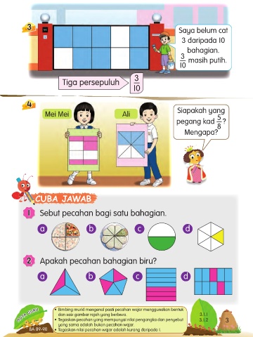 NOTA GURU • Bimbing murid mengenal pasti pecahan wajar menggunakan bentuk 3.1.2