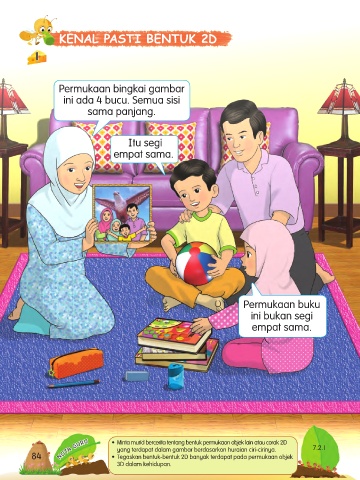 NOTA GURU • Minta murid bercerita tentang bentuk permukaan objek lain atau corak 2D 7.2.1