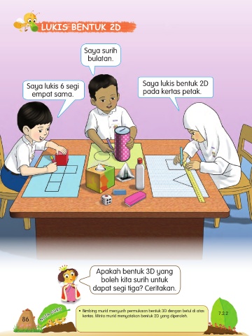NOTA GURU • Bimbing murid menyurih permukaan bentuk 3D dengan betul di atas 7.2.2