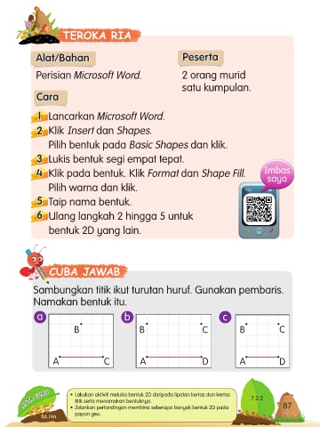NOTA GURU • Lakukan aktiviti melukis bentuk 2D daripada lipatan kertas dan kertas 7.2.2 87