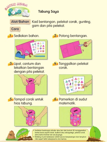 Alat/Bahan Kad bentangan, pelekat corak, gunting,