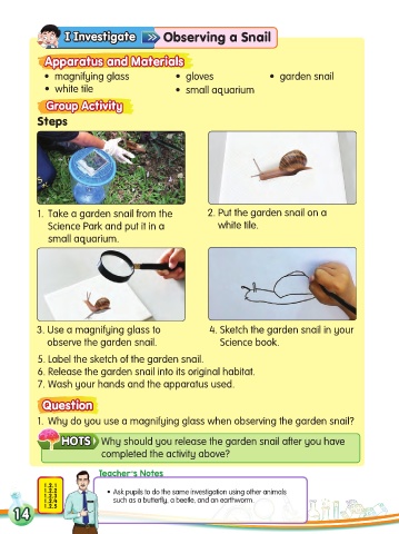 observe the garden snail. Science book.