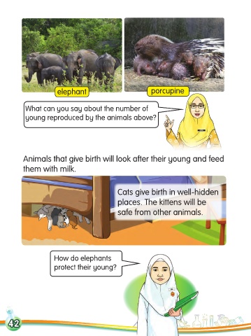 Animals that give birth will look after their young and feed