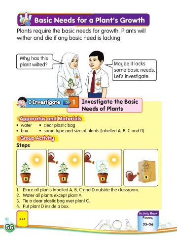 1. Place all plants labelled A, B, C and D outside the classroom.