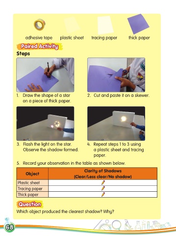 Observe the shadow formed. a plastic sheet and tracing